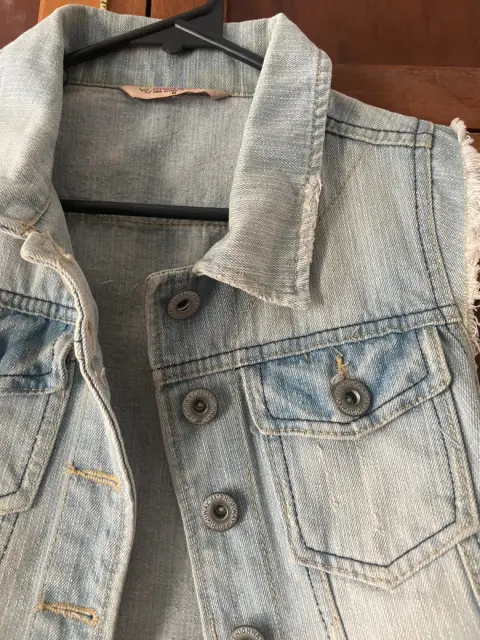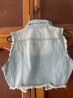 Bonito chaleco de mezclilla tono azul claro. Corto, talla chica. En perfectas condiciones, poco uso.