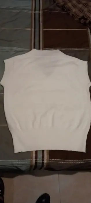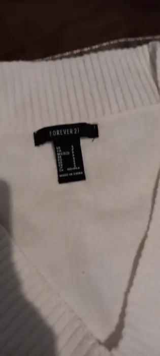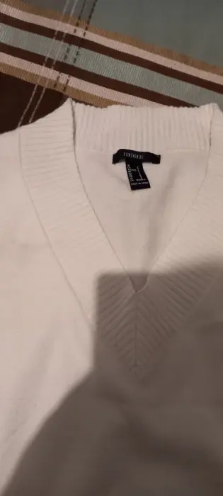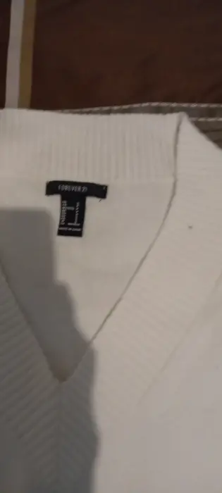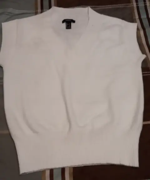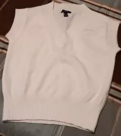 Chaleco de punto, marca forever 21, color blanco talla S, cuello en V, viene amplio, le queda a una talla M,
