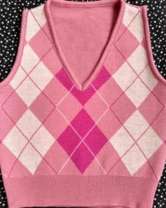 Chaleco de rombos. Chaleco rosa coral con hueso 46 cm de largo 43 de ancho tejido de punto.