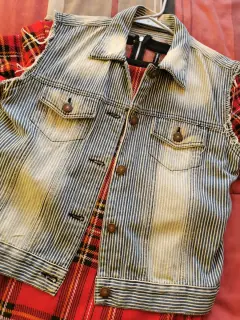 Chaleco denim (SXY JNS) 😍. Chaleco denim estilo vintage, talla mediana, color azul marino en diferentes tonos✨