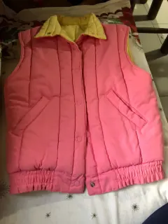 Chaleco Doble Vista Members Only. Chaleco Marca Members Only, doble vista, con broches, Talla 14 y alegres colores (Amarillo y Rosa).. Resorte a la cintura.