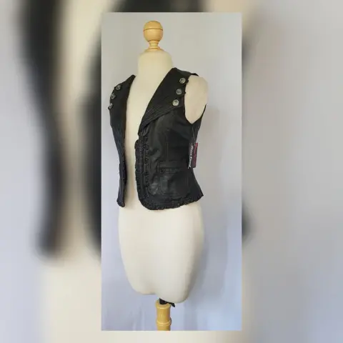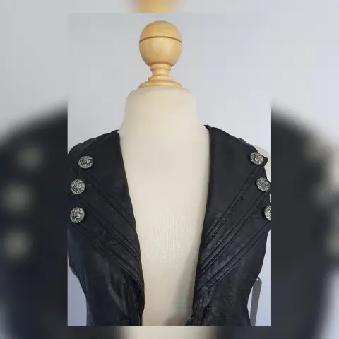 Chaleco en Fake Fur Botones. Chaleco en Fake Fur color NEGRO ÉBANO, cuello clásico c/solapas y botonadura, manga sisa, sin sistema de cierre, 2 bolsos plastrón y forro interior. Talla M/G (REDUCIDA, da mejor a S/M). Dimensiones cms: 33 hombro, 44 axila, 41 cintura, 49 zona baja, 49 largo. 100% poliuretano. Para limpieza en casa.