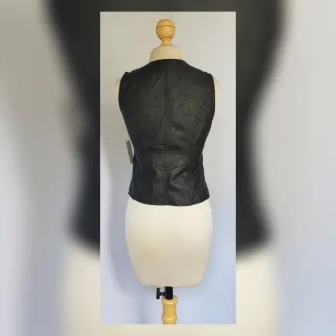 Chaleco en Fake Fur color NEGRO ÉBANO, cuello clásico c/solapas y botonadura, manga sisa, sin sistema de cierre, 2 bolsos plastrón y forro interior. Talla M/G (REDUCIDA, da mejor a S/M). Dimensiones cms: 33 hombro, 44 axila, 41 cintura, 49 zona baja, 49 largo. 100% poliuretano. Para limpieza en casa.
