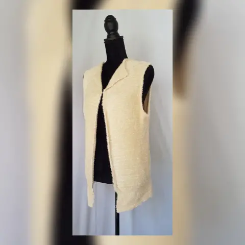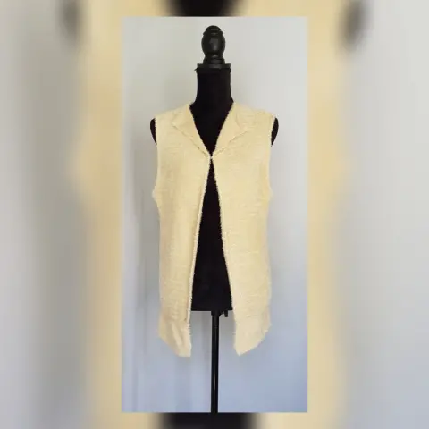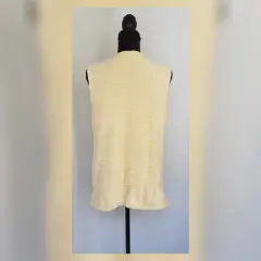 Chaleco Ensamble en Tejido de Punto. Chaleco ensamble ligero en tejido de punto color BEIGE, cuello redondo, manga sisa y sin sistema de cierre. Talla G. Dimensiones cms: 40 hombro, 55 axila, 52 zona baja, 60 largo. 100% poliamida. Para lavado en casa.***SE ENTREGA LAVADO Y DEODORIZADO***
