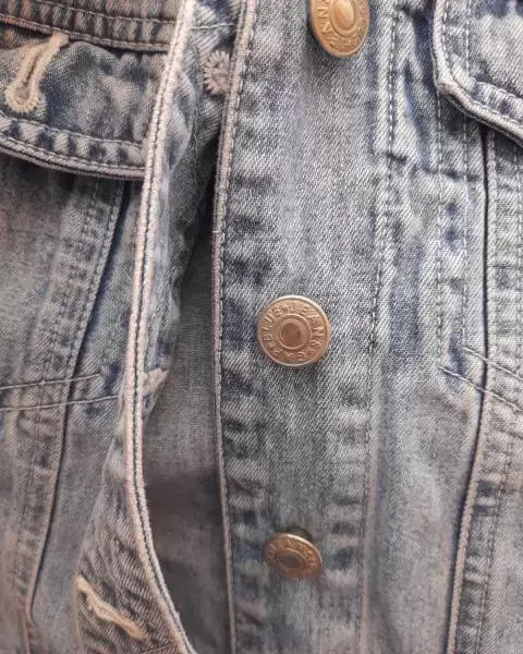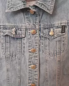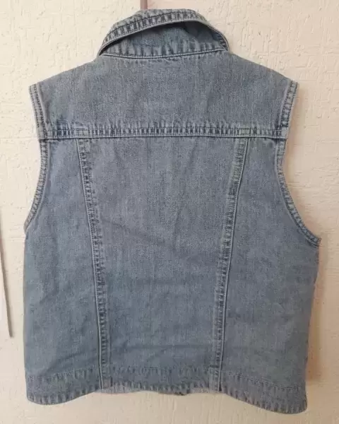 Chaleco de mezclilla para niña, con botones metálicos, talla 10, sin detalles.