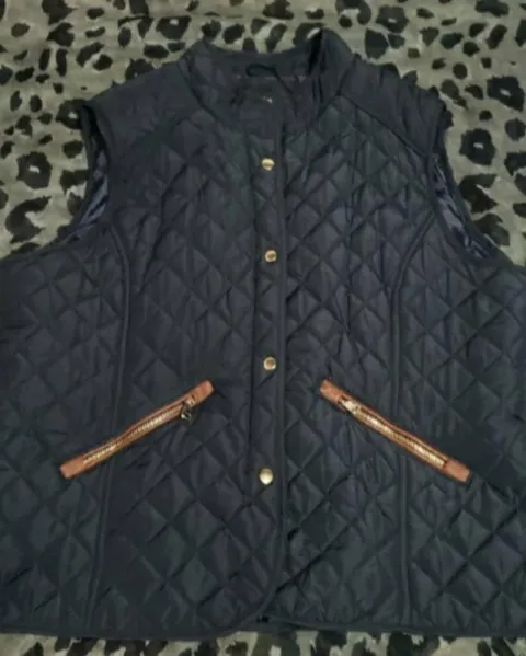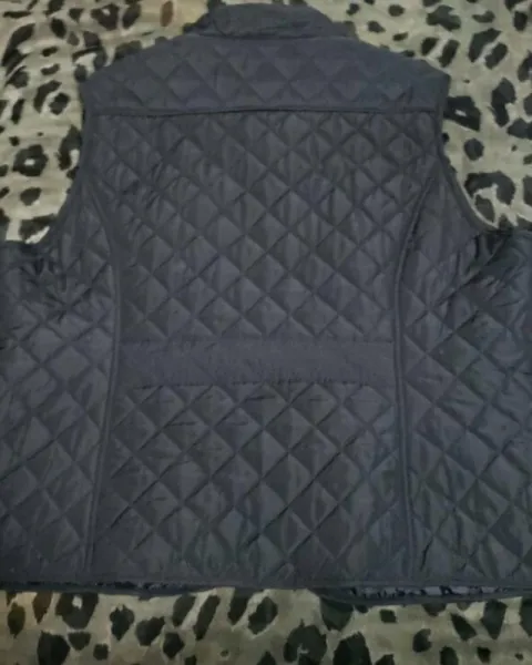 Lindo chaleco azul marino, con cierre y bonotes al frente, bolsillos con cierre, se uso una sola vez viene un poco reducido, queda a talla G.Medidas: Largo desde el cuello 53 cm, ancho 60 cm.