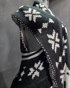 Chaleco largo blanco/negro. Chaleco largo, debajo de la cadera. Detalles: • tejido • nuevo