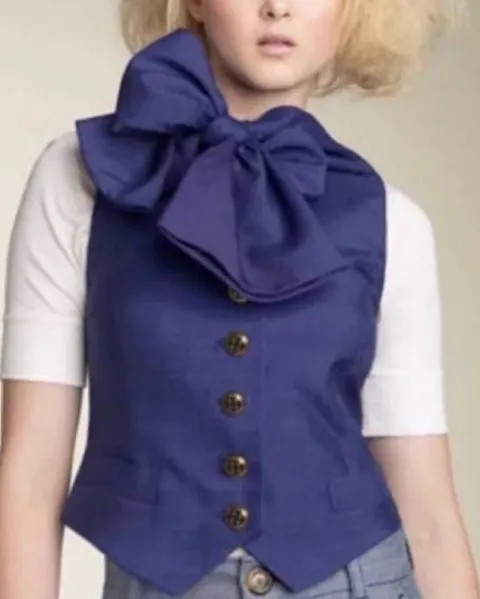 Chaleco Marc Jacobs. Increíble chalequito morado con moño. Luce muy bonito y es combinable con varios estilos. tiene un DETALLE: Le falta un botón, sin embargo, no se nota por el moño de enfrente. Los botones son los originales.