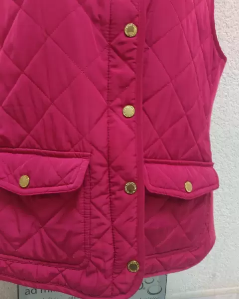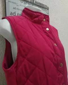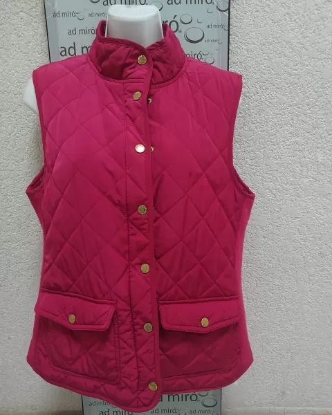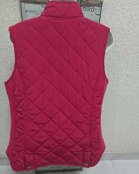 .. Chaleco hermoso, comodo y adecuado para toda estación del año. Color Fuisha, con cierre y botones a presion dorados. Dos bolsillos y dos botones en la espalda que le dan un toque dinámico. Exterior, relleno y forro 100% poliéster. 50cm de axila axila. 23cm de manga. 61cm de largo. Súper lindo!!