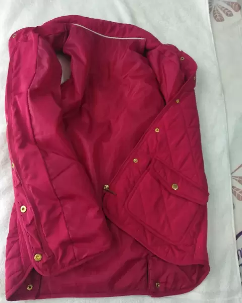 Chaleco hermoso, comodo y adecuado para toda estación del año. Color Fuisha, con cierre y botones a presion dorados. Dos bolsillos y dos botones en la espalda que le dan un toque dinámico. Exterior, relleno y forro 100% poliéster. 50cm de axila axila. 23cm de manga. 61cm de largo. Súper lindo!!