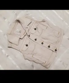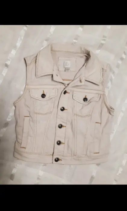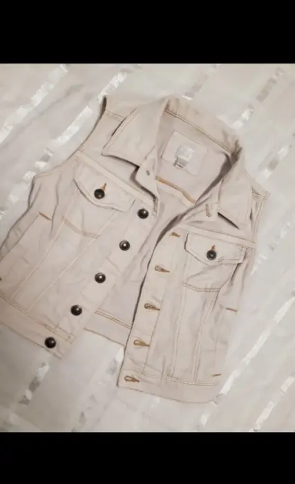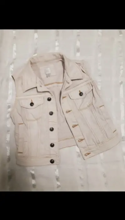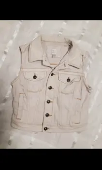 Chaleco mezclilla. Chaleco muy lindo super padre el tono de color es entre beige y marfil, se uso poco