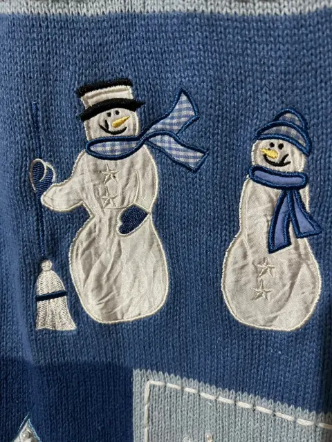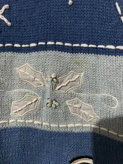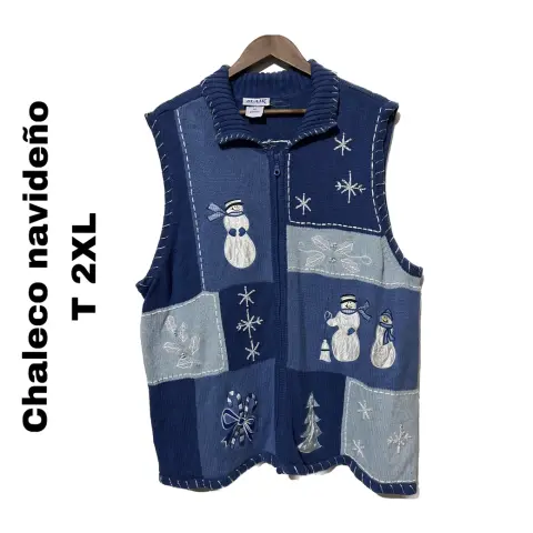 Chaleco azul navideño de copos de nieve bordados, detalles tiene una mini manchita por el copo de nieve. Medidas hombros 45 cm, axila 60 cm, largo 71 cm.Por favor si no estás segura de comprar no apartes la prenda