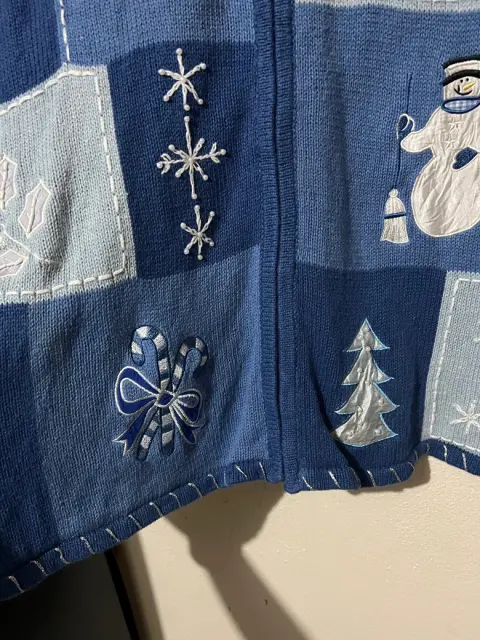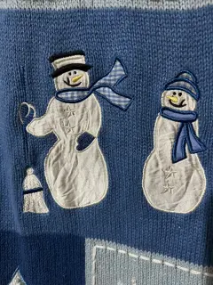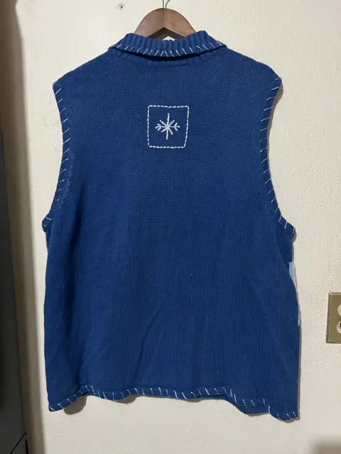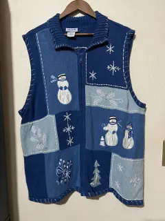 Chaleco navideño azul. Chaleco azul navideño de copos de nieve bordados, detalles tiene una mini manchita por el copo de nieve. Medidas hombros 45 cm, axila 60 cm, largo 71 cm.Por favor si no estás segura de comprar no apartes la prenda