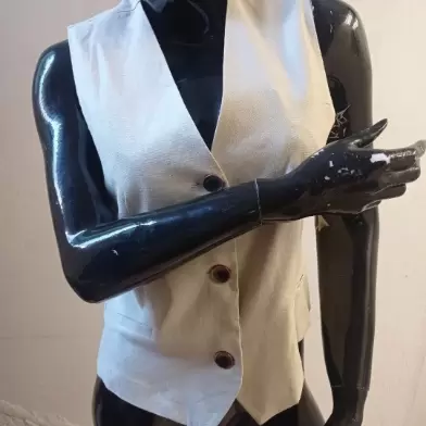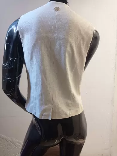 Tendencias primavera verano 2023**Chaleco de Lino algodón (premium)*Tallas 28 a 36*Color arena, es nuevo, sin detalles, con etiqueta dice puesto una vez x impuestos
