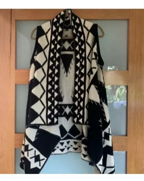 Chaleco de patrón Indi, blanco con negro, talla L, marca Forever 21, queda muy bien para la temporada de invierno, es calientito.