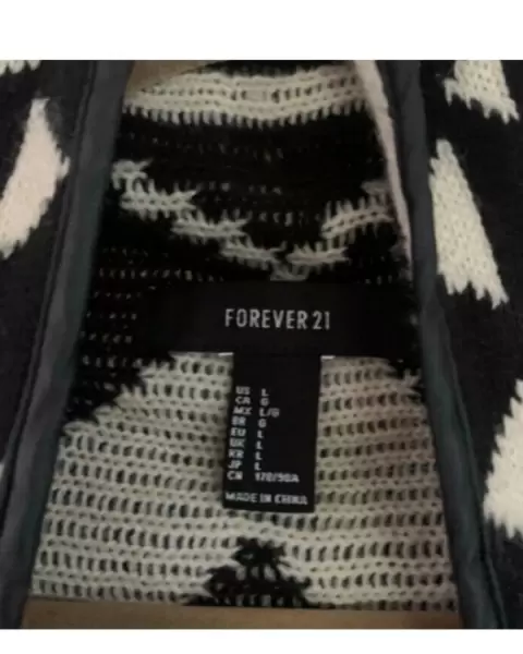 Chaleco patrones Forever 21 🖤. Chaleco de patrón Indi, blanco con negro, talla L, marca Forever 21, queda muy bien para la temporada de invierno, es calientito.