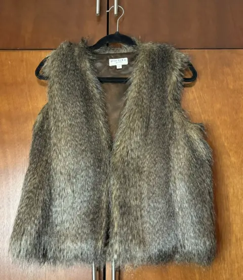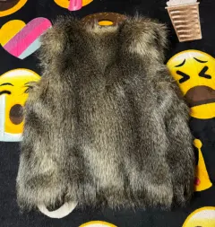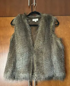 Chaleco peludo, una puesta, sin detalles, color café, talla: Mediano.