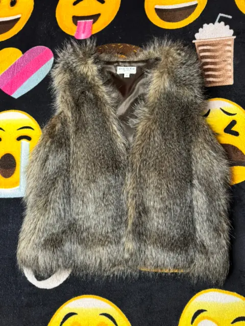 Chaleco Peludo Pettite Studio. Chaleco peludo, una puesta, sin detalles, color café, talla: Mediano.