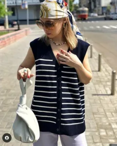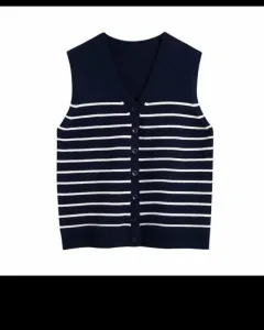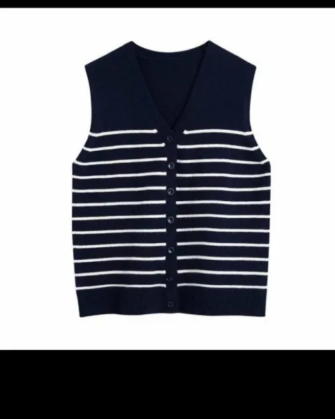 Hermoso chaleco rayado, color azul marino. Súper suave y en tendencia. Es talla S pero viene oversize por lo que aconsejo a talla M. Nuevo y con etiqueta