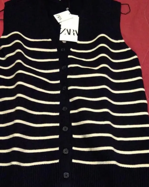 Chaleco rayado ZARA. Hermoso chaleco rayado, color azul marino. Súper suave y en tendencia. Es talla S pero viene oversize por lo que aconsejo a talla M. Nuevo y con etiqueta