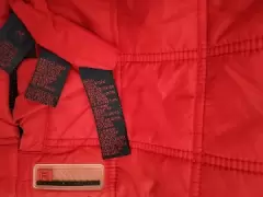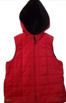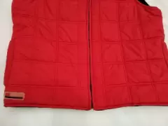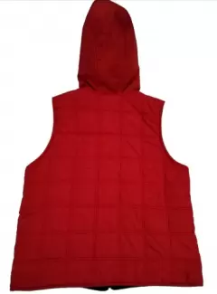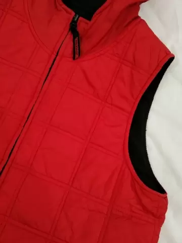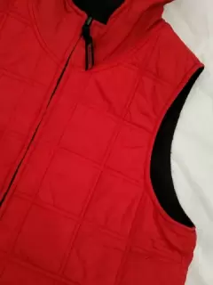 Chaleco rojo con gorro. Bonito chaleco talla M con cierre metálico, bolsillos laterales doble vista negro y rojo confeccionado con Nylon y poliéster