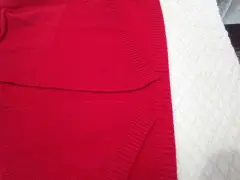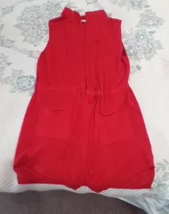 Chaleco Rojo Unitalla. Versátil y lindo chaleco color Rojo quemado, con gorro y cinta de ajuste en la cintura. Tejido, no de tela. Tiene bolsas al frente. Unitalla. Nuevo sin etiqueta