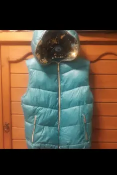 Chaleco talla Mediana, color verde agua, cierre alfrente, cierres en bolsillos laterales, goero con lentejuela dorada, afelpado interior, esta super padre tiene una puesta esta en perfecto estado y limpio.
