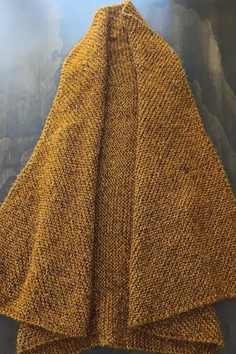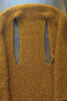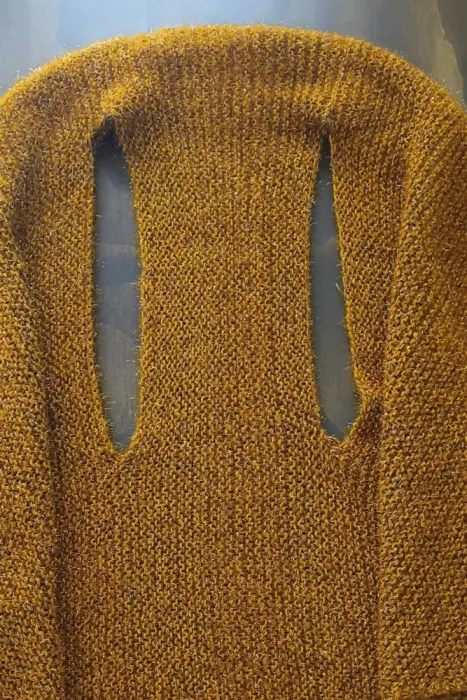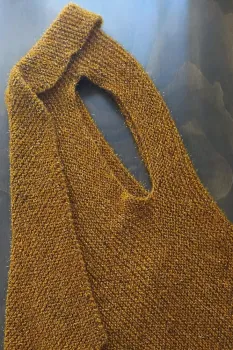 Chaleco tejido. Chaleco largo tejido color dorado con cafe