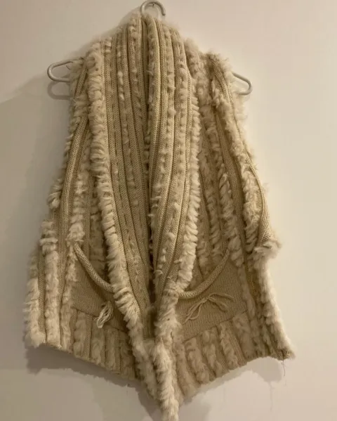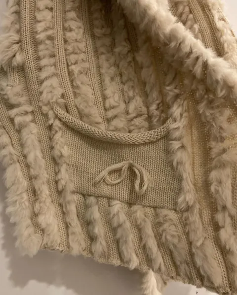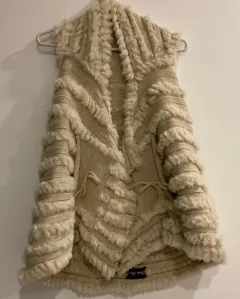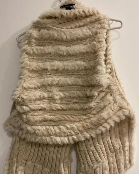 Lindo chaleco tejido en color beige con piel de conejo (sintético) muy calientito, para usar con jeans o lo que sea ! Sin detalles, como nuevo!