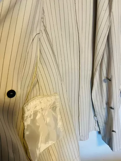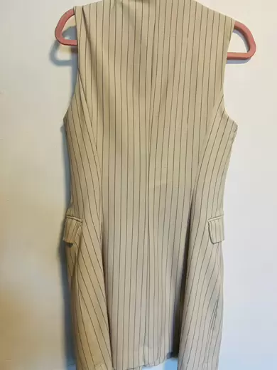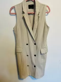 Chaleco tipo blazer raya diplomática.. Bonito chaleco beige, raya, largo tipo blazer, ya sea uso como vestido o como subí en la imagen ilustrativa, sin detalle, las fotos del chaleco son reales, talla L berskha