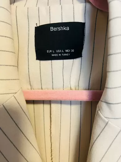 Bonito chaleco beige, raya, largo tipo blazer, ya sea uso como vestido o como subí en la imagen ilustrativa, sin detalle, las fotos del chaleco son reales, talla L berskha