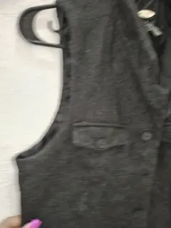 CHALECO TIPO GAMUZA GRIS. Chaleco de gamuza color gris Oxford casi negro súper bonito para un look casual o un look elegante para ir a la oficina todos los botones completos color 10 de 10.... SIN DETALLES