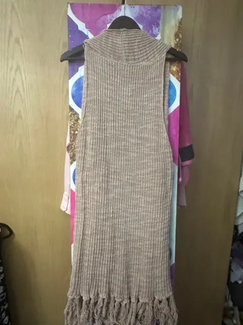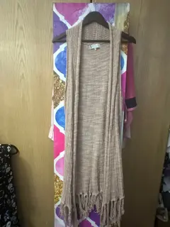 Hermoso chaleco tipo tejido, largo , con barbas en la parte de abajo , excelentes condiciones