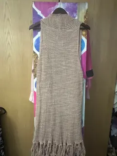 Chaleco tipo tejido. Hermoso chaleco tipo tejido, largo , con barbas en la parte de abajo , excelentes condiciones