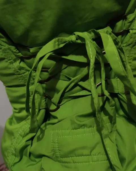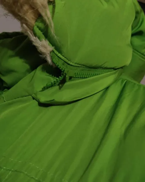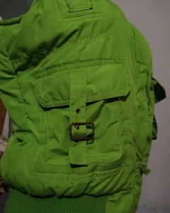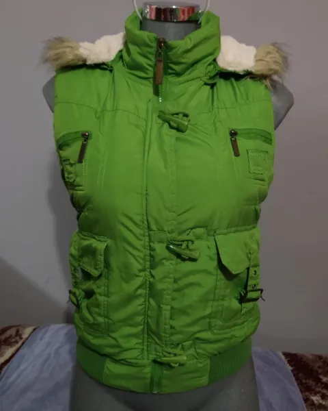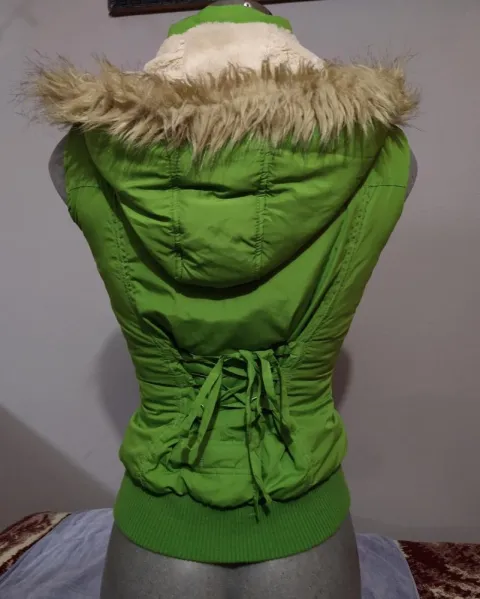 Hermoso chaleco verde manzana, varios bolsillos, se ajusta por la espalda para dar una bonita figura, el gorro es desmontable, por dentro es tela polar muy calientito
