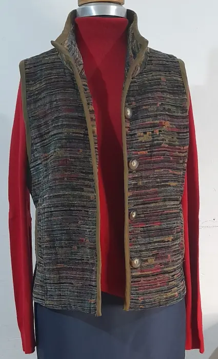 Chaleco para dama, SEMINUEVO, marca CHRISTOPHER & BANKS, talla XL (extra grande), jaspeado mticolor, corte 54% polyester y 46% rayón, forro 100% polyester.