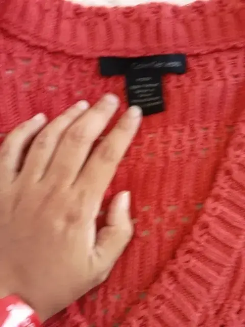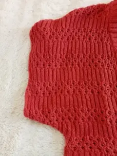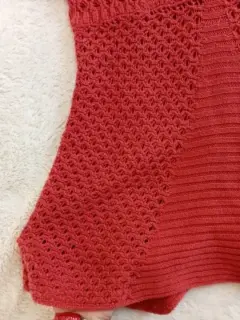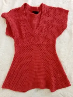 Ensamble de color coral, hermoso, tejido de punto, abajo de la cintura, cuelo V, manga corta de apertura amplia.Talla S, marca Calvin Klein.100% algodón.