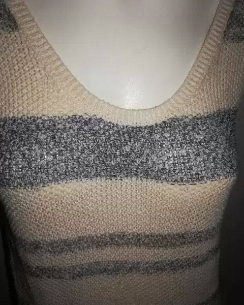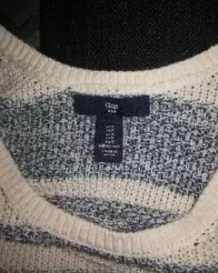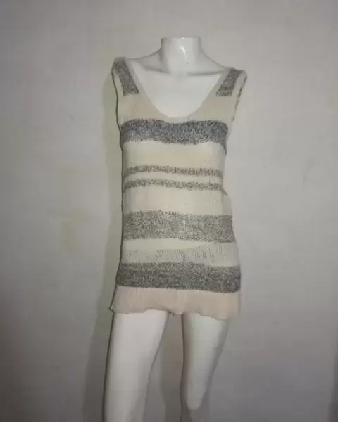 -Precioso chaleco tipo tejido de GAP, en perfecto estado.-Talla S, Chica-Color perla con rayas horizontales colores azul y gris -Escote circular -100% Algodón -Se transparenta un poco -Si requieres mayor información o fotos no dudes en contactarme 😊😉