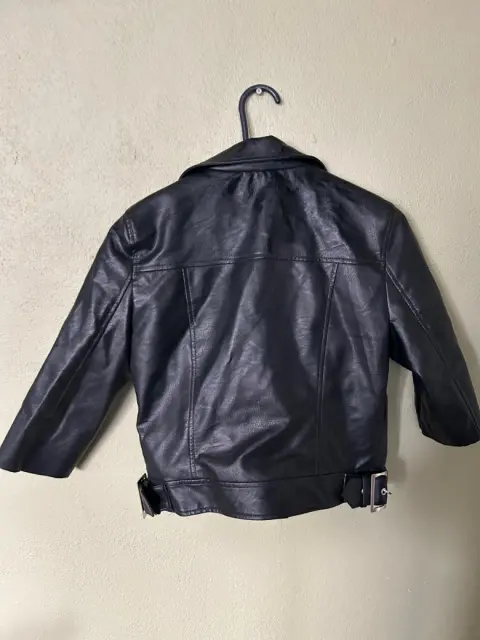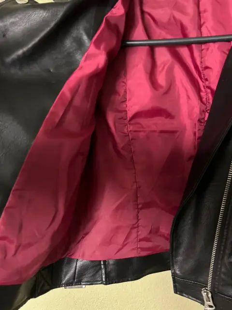 Chamarra biker, sin detalles, así la compré de manga 3/4 es sintéticaSus medidas:45 de axila a axila46 largo
