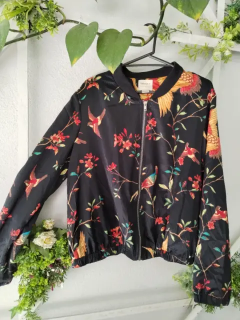 Bomber jacket color negro con estampadoTalla: LMarca: Forever21