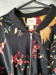 Bomber jacket. Bomber jacket color negro con estampadoTalla: LMarca: Forever21