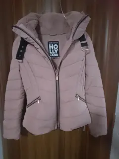 Hermosa chamarra color palo de rosa en la etiqueta viene como talla M pero está algo reducida a una talla S le quedaría muy cómoda cuenta con resorte a los lados así que al cerrarla amolda muy bien tu figura