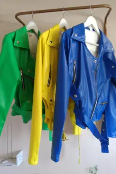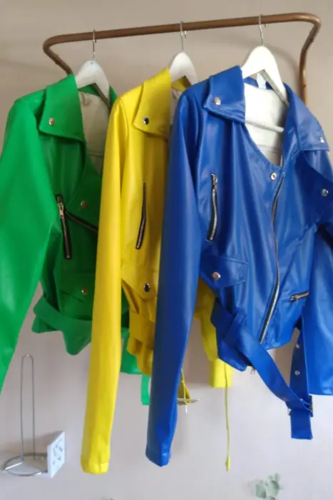 Cazadora biker de vinipielcolor verdecon cinturón ajustableEnvió inmediato