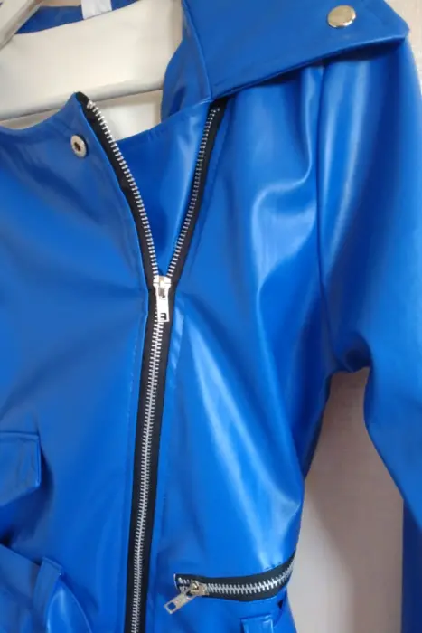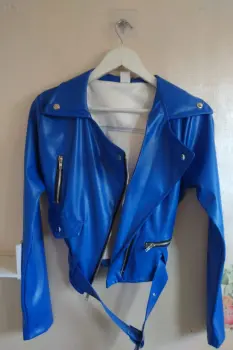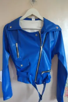 CAZADORA BIKER AZUL. Cazadora biker de vinipielcolor verdecon cinturón ajustableEnvió inmediato