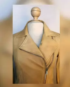 Cazadora color mostaza estilo biker en napa, corte slim, cuello con tira, cierre mediante cremallera frontal, dos bolsillos frontales, manga larga terminada en puño con cremallera, charreteras dobles con snaps en cintura parte posterior, herrajes tono plata brillante, forro interior. 100% piel ovina, forro: 67% algodón, 33% poliéster. Para limpieza con especialista. Talla M. Dimensiones cms: 39 hombro, 47.5 axila, 42.5 cintura, 46 zona baja, 57 largo, 56 largo manga.***LA PIEL DE ESTA PRENDA ES EXTRA SUAVE***ESTE PRODUCTO SE HA PRODUCIDO EN TENERIAS CERTIFICADAS COMO "LEATHER WORKING GROUP ORO", UTILIZANDO ENERGIAS RENOVABLES Y TECNOLOGÍAS QUE REDUCEN EL CONSUMO DE AGUA***