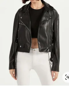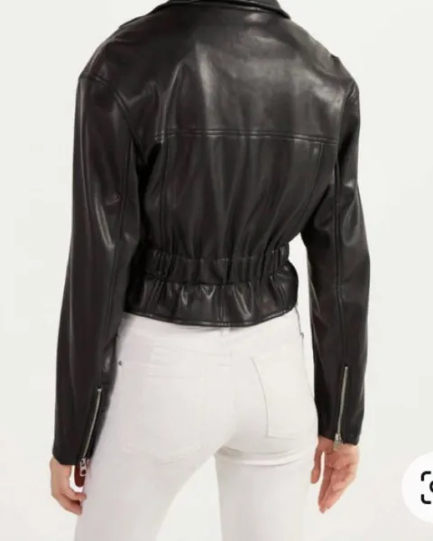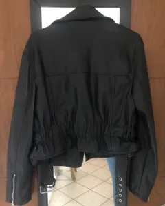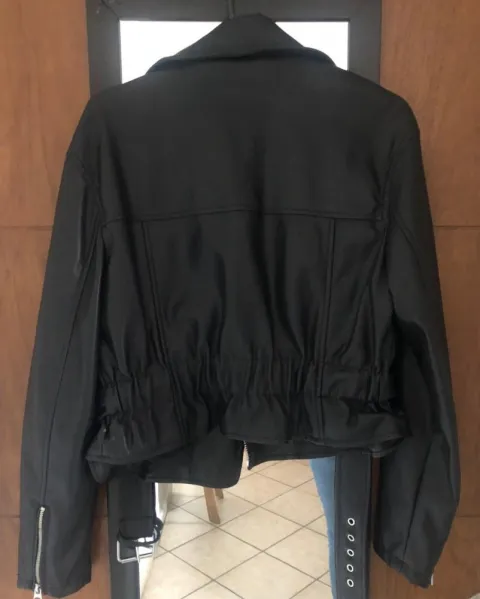 Cazadora biker de polipiel color negro, talla M, detalle de cremalleras frontales y en mangas, detalle corrugado en la parte trasera que permite acentuar la cintura, nueva sin defectos ni detalles