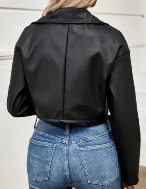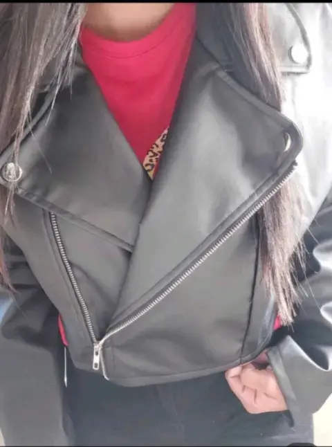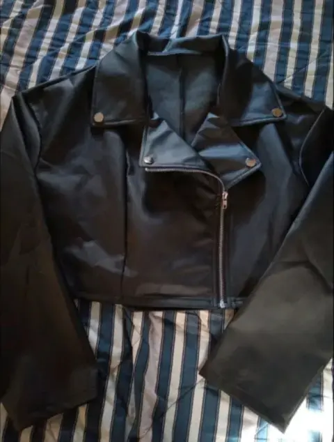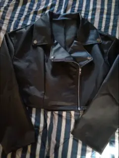 Cazadora nueva corta,tipo biker.Vinipiel con cierre y detalles en plata. Tela muy cómoda, no acalora y tiene strech.Busto:113 CM Largo 48 CM. 😎🎸