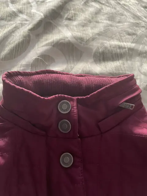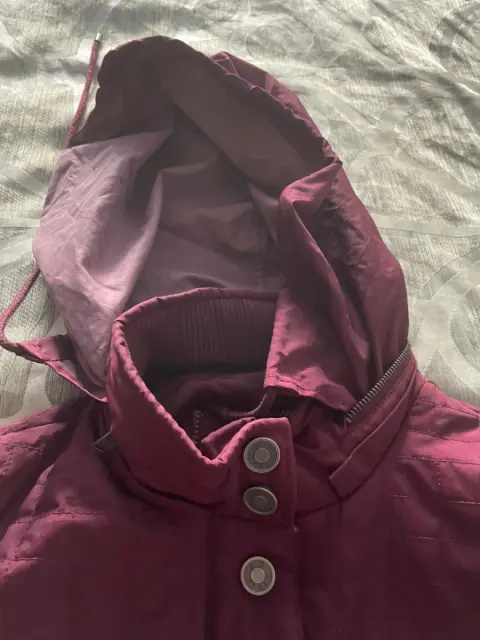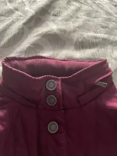 Linda chamarra color vino con tela tipo resorte en los lados y la parte de atrás para ajustar la figura, en frente y mangas tela impermeable, bolsas frontales, con gorro el cual se puede ocultar en la parte del cuello que tiene un compartimiento