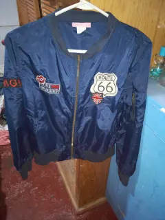 Chamarra color azul , solo tuvo una puesta , unitalla en buen estado sin ningún detalle