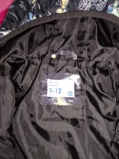 Chamarra. Se encuentra en venta chamarra para niño color negra con dibujos de dinosaurios, talla de 9 a 12 meses, marca C&A, en buenas condiciones.